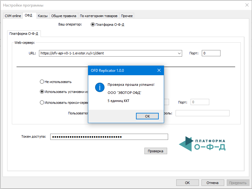 Программа реплицирует (импортирует) события пробития четов кассами из облачного сервиса «Платформа О-Ф-Д» в облачный сервис CXM-Online.