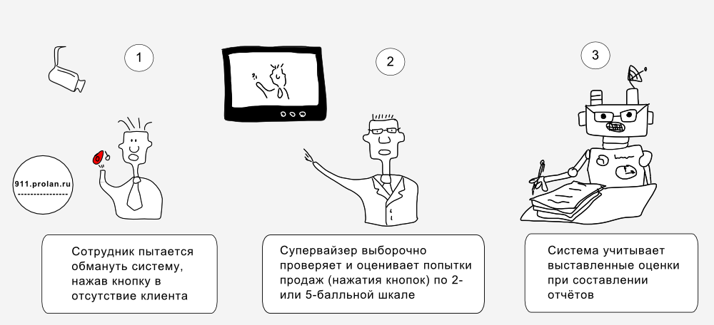 В отличие от других систем, Кнопка Активности Продавцов подсчитывает и учитывает при оценке эффективности персонала не только число посетителей торговой точки и число совершённых сотрудником продаж, но и число сделанных им попыток продаж.