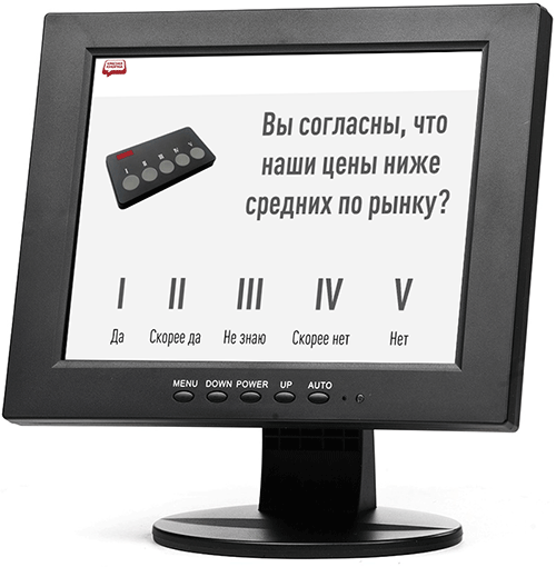 Если планируются только стихийные опросы (получение обратной связи), то число кнопок на опросном пульте принципиального значения не имеет; 3-х кнопок более чем достаточно. Если планируется проводить также и репрезентативные опросы, то желательно использовать пульты с 5-ю кнопками.