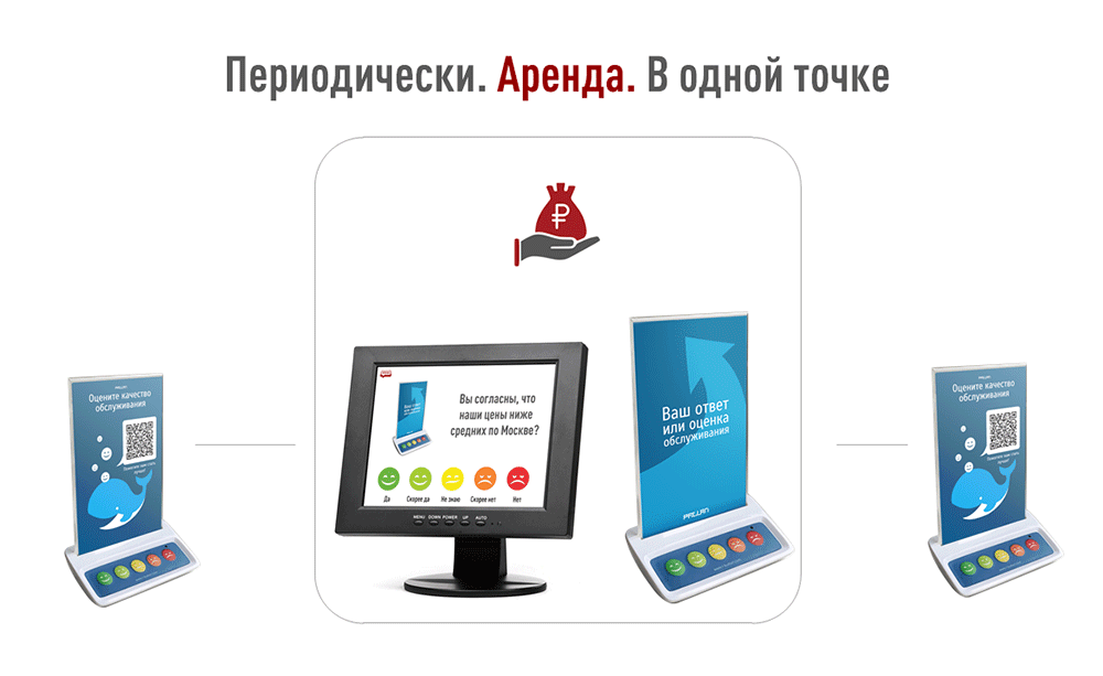 - Ключевое преимущество Кнопки Анкетёр не в том, что это экономичное решение, т.к. в нем используются обычные мониторы и кнопки, а не сенсорные терминалы (планшеты), и его можно брать в аренду.