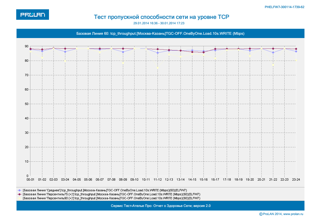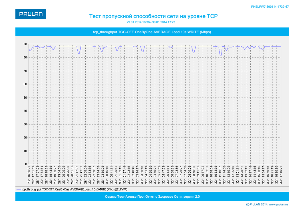 Управление генерацией трафика позволяет, с одной стороны, автоматизировать измерение пропускной способности сети, с другой стороны, проводить замеры только в те периоды, когда пользователи не работают. Это обеспечивает высокую репрезентативность и достоверность получаемых результатов. Такая технология тестирования является know how компании ProLAN.