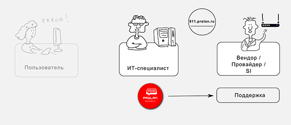 Получателем поддержки выступает не конечный пользователь, а системный администратор или другой ИТ-специалист, ответственный за работоспособность сети. Кнопка Помощи ITSM призвана оказать ему помощь тогда, когда собственных навыков администратора оказывается недостаточно для диагностирования и решения сложных проблем. Кнопка Помощи ITSM связывает его со службой поддержки Вендора оборудования, Провайдера, Системного интегратора или ИТ-службы главного офиса компании (для распределённой ИТ-службы).