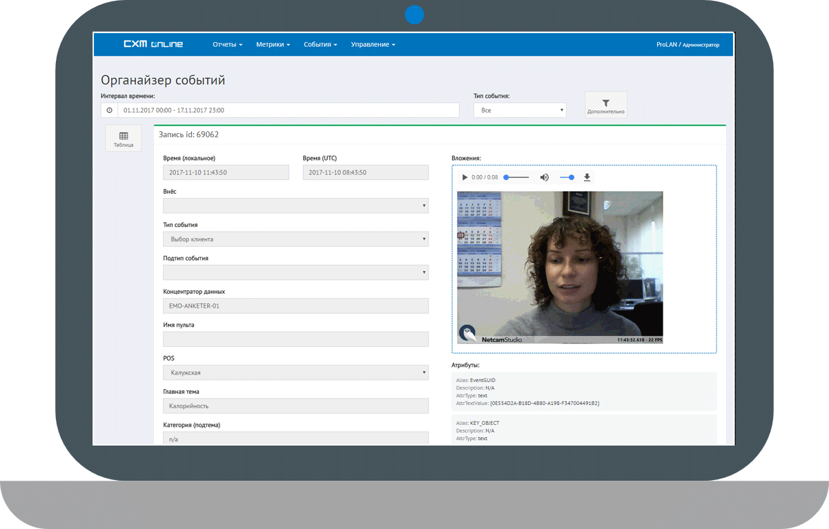 На основе получаемых оценок автоматически формируются метрики клиентского опыта, которые представляются в удобном для анализа виде, в форме отчетов, диаграмм, графиков и т.п. Для этого могут использоваться разные продукты, см. раздел Архитектура.