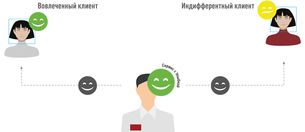 Но у улыбки фронт персонала есть еще одно важное применение. При определенных условиях она вызывает улыбку клиента. Это называется эмоциональным заражением.
