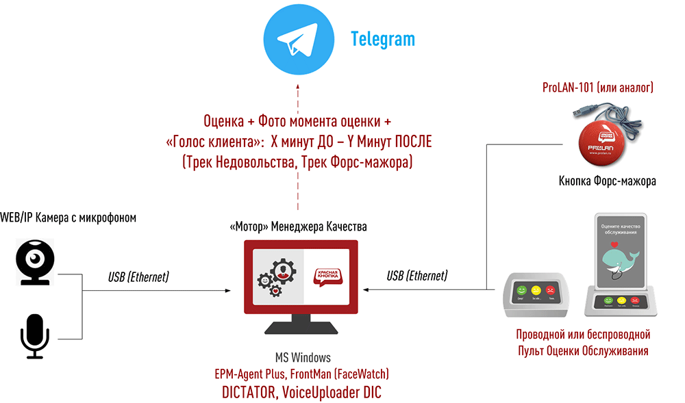 Функциональные возможности Менеджера Качества = функциональные возможности Катализатора Лояльности + автоматическая передача в группу Telegram следующей информации: