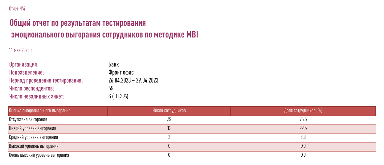 Тестирование на основе полного опросника Maslach Burnout Inventory (MBI) целесообразно проводить не реже 1 раза в 3-6 месяцев.