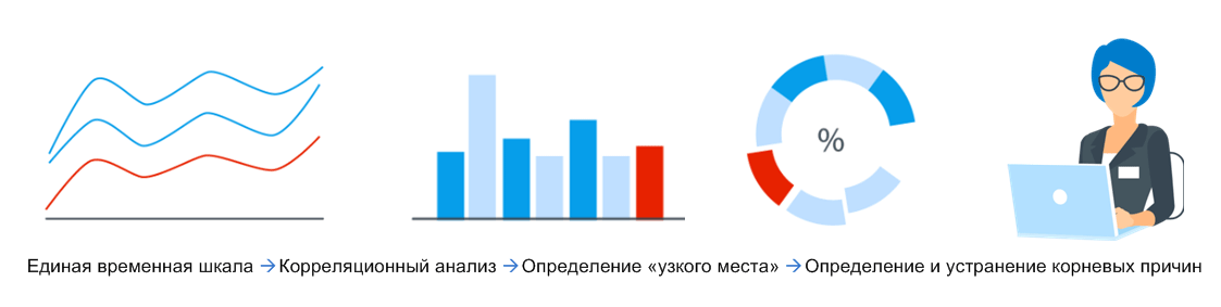 Второе можно сделать двумя способами. Если метрик относительно немного, то можно провести визуальный анализ соответствующих графиков. Если метрик много, то временные ряды можно выгрузить, например, в MS Excel, и автоматизировать процесс анализа. Наибольший интерес представляют следующие зависимости:
