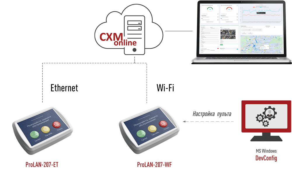 Легкое эффективное решение для мониторинга воспринимаемого качества обслуживания в автономных точках контакта. Не требует установки компьютера. Вся получаемая информация автоматически по Ethernet или Wi-Fi передается в облачный сервис (может устанавливаться на ваш сервер).