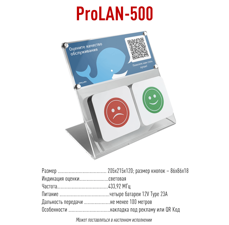 ОПЦИОНАЛЬНО. Беспроводная Кнопка ProLAN-150. Используется для запуска управляемых опросов, например, в торговом зале. |