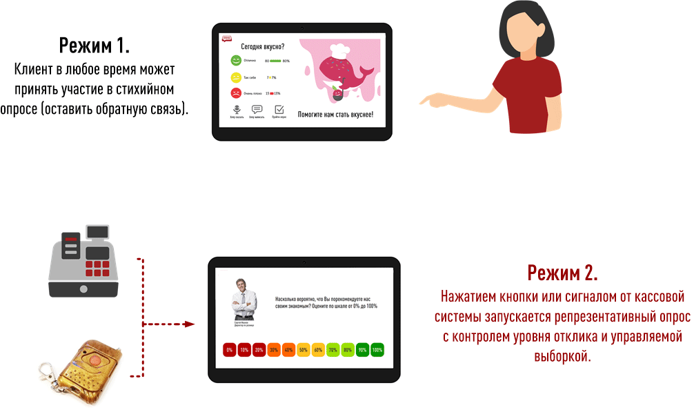 Комплектация СТАРТ чаще всего используется вне точек контакта (на выходе, в зоне ожидания, в торговом зале) с целью получения информации о впечатлениях клиентов, покупателей, пациентов, сотрудников.