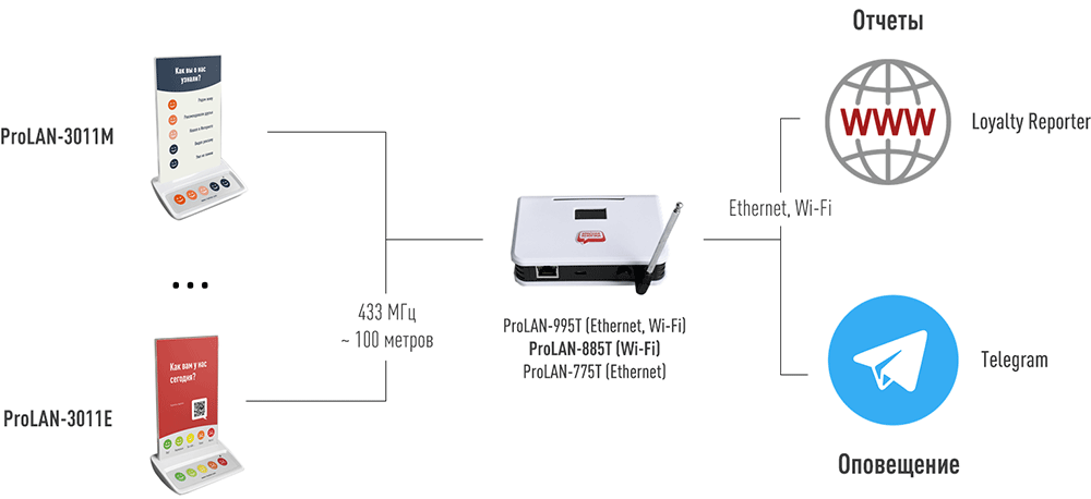 Предоставляемое оборудование предварительно настроено и подключено к вашему личному кабинету в сервисе Loyalty Reporter и, опционально, вашей группе Telegram. Вам остается только установить оборудование в точках обслуживания клиентов, проинструктировать фронт персонал и начать получать информацию.
