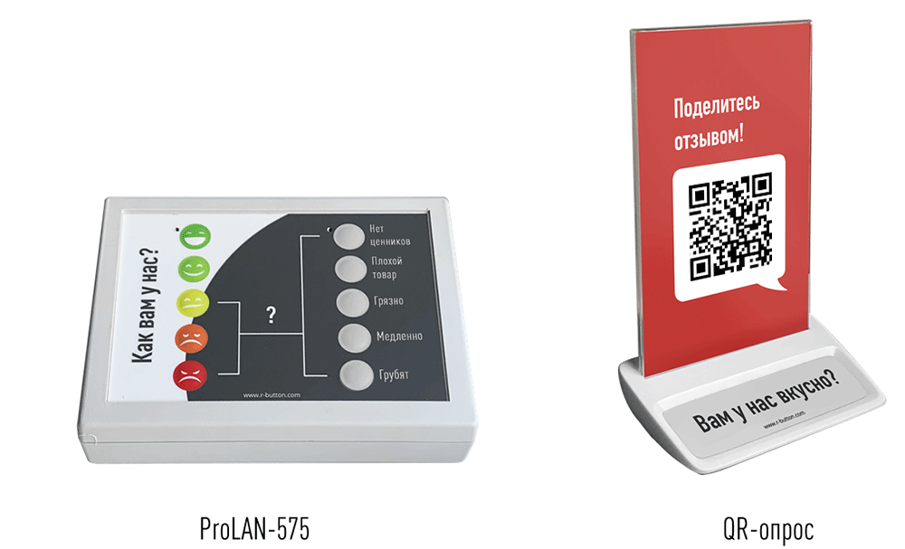 Легкая Обратная Связь (ЛОС) «Код + Кнопка» наиболее эффективна для получения обратной связи в точках контакта (точках присутствия фронт персонала), например, регистратура клиника, касса магазина и т.п. Подробнее см. ниже: ЛОС «Код + Кнопка» на основе ProLAN-575 эффективнее ЛОС «На основе планшета»