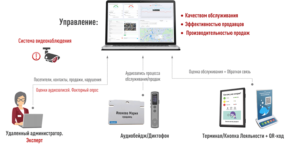 - Электронный Тайный Покупатель на основе аудиобейджа Свидетель. Менеджер Качества ЛАЙТ поддерживает все возможности Электронного Тайного Покупателя и дополнительно позволяет управлять воспринимаемым качеством обслуживания.