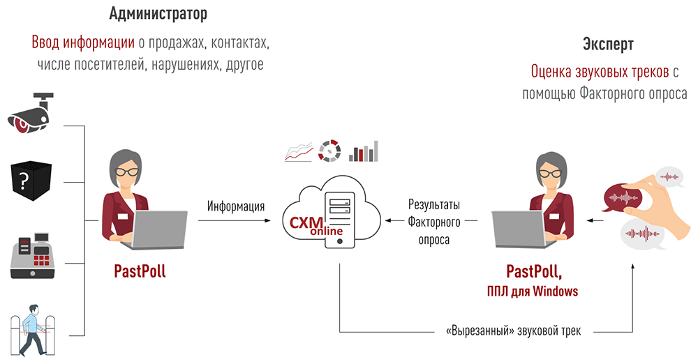 - Оценка прослушиваемых в CXM-Online записей разговоров с помощью Факторных опросов, настраиваемых в CXM-Online и выполняемых с помощью Windows-приложения ППЛ для Windows.