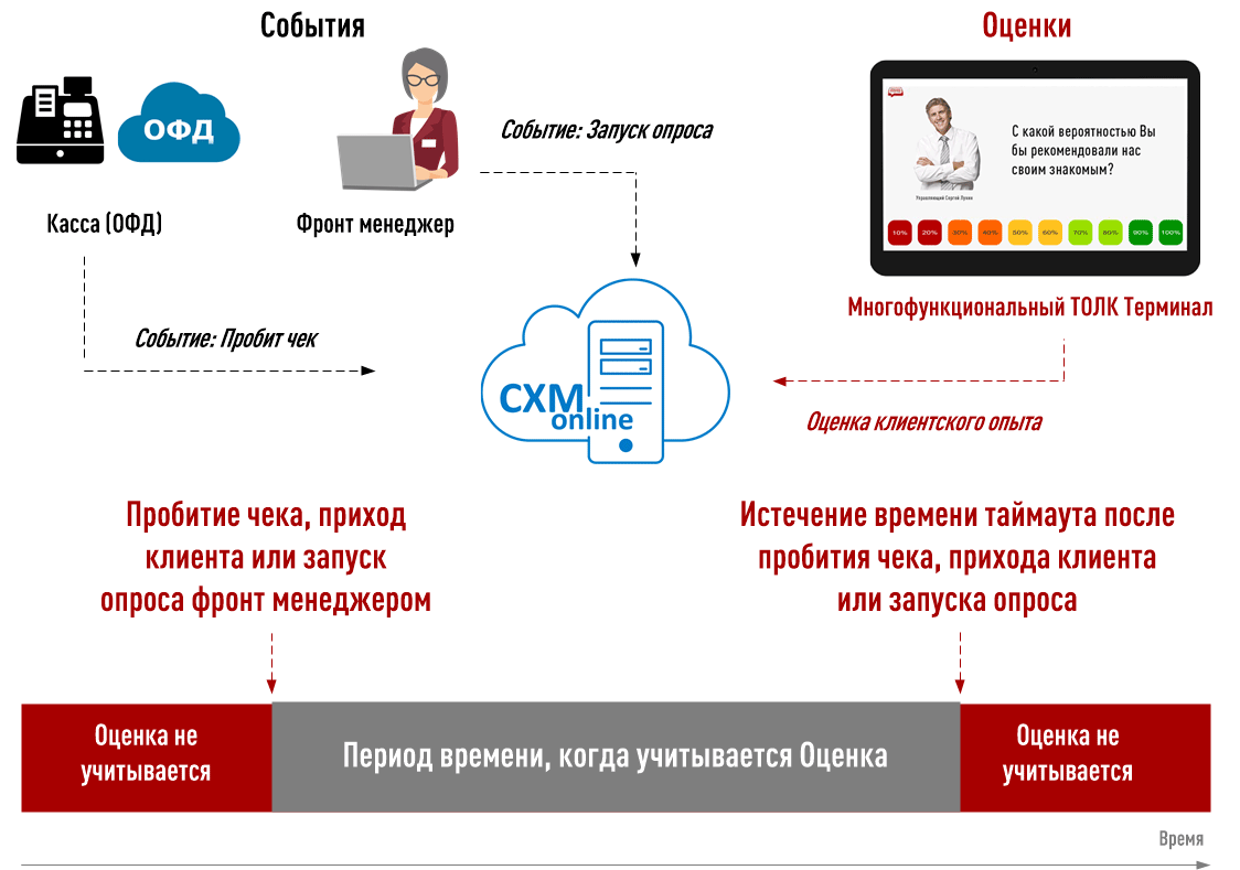 Для поддержки этих решений при Репрезентативных опросах используется методика «открытого окна», при которой учитываются только те оценки, которые были получены в определенное время, «привязанное» к внешним событиям. Например, к запуску опроса фронт менеджером, пробитию чека или приходу клиента в точку контакта. Эти же внешние события используются для измерения числа обслуженных клиентов, а также и доли клиентов, не захотевших участвовать в опросе.