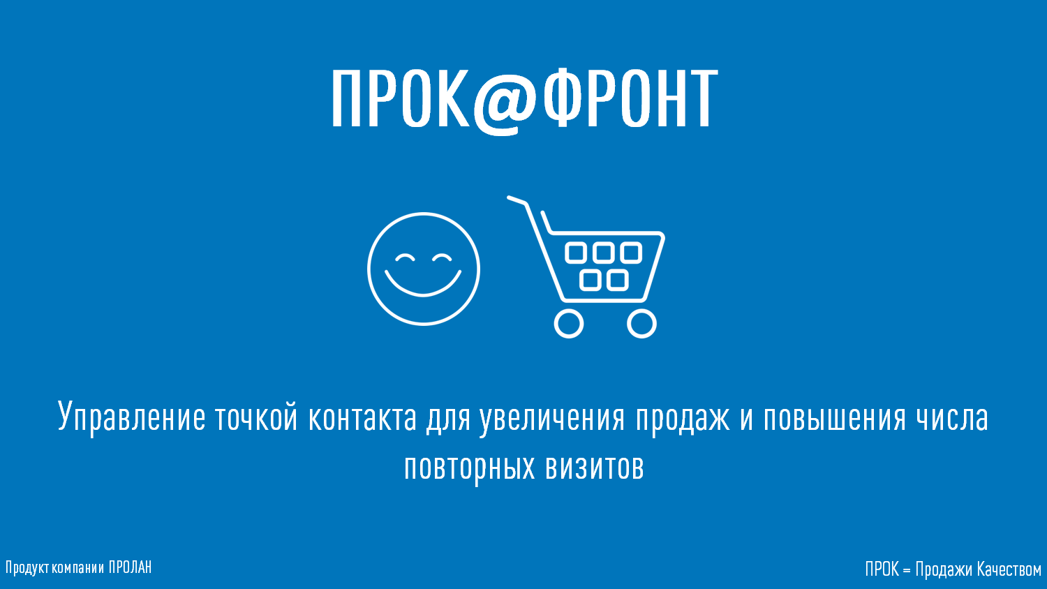 | ПРОК@ФРОНТ №4 | Профессиональное решение для повышения продаж, качества клиентского сервиса, улучшения репутации компании при относительно коротких по времени контактах между клиентами и фронт-персоналом и большом потоке клиентов. Фронт-персонал и покупатели контактируют в одной точке (на кассе). |
