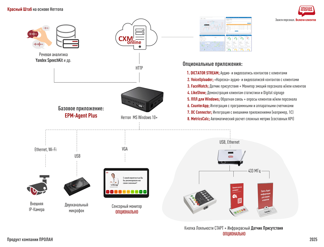 Как коробочный продукт Красный Штаб может поставляться в разных комплектациях. В базовой комплектации он наиболее эффективен в небольших точках быстрого обслуживания: специализированные магазины, рестораны быстрого питания, небольшие клиники, кофейни и т.п.