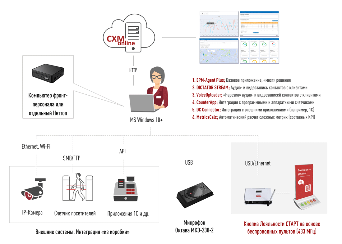 Экономичное комплексное решение для точек обслуживания и продаж, в которых на передней линии используются компьютеры под MS Windows. Оптимально для точек офисов обслуживания клиентов (банк, страховая компания и т.п.)