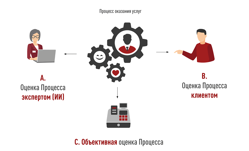 - Со стороны эксперта (или ИИ). Оценка, в какой степени Процесс соответствует принятому стандарту (обслуживания, продаж и т.п.)