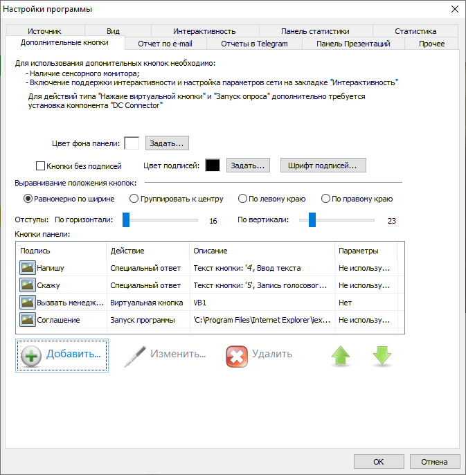 В интерактивном режиме, программа также поддерживает возможность размещения на панели статистики дополнительных кнопок.