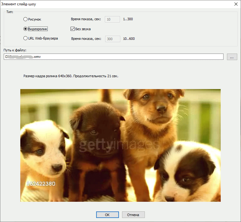 В режиме Digital Signage в Панели Презентаций показывается набор рекламных и информационных элементов – Слайд шоу и, опционально, бегущая рекламная строка. Список элементов Слайд-шоу настраивается и может храниться как на локальном компьютере, так и в папке файлового сервера. В последнем случае единым списком могут пользоваться сразу несколько компьютеров сети с программой LikeShow. Изменения в составе списка элементов автоматически подхватываются всеми компьютерами.