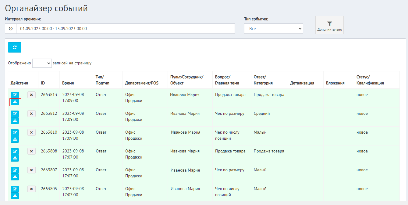 По окончании Опроса, программа EPM-Agent самостоятельно сформирует в сервисе CXM-Online события ответов на вопросы с заданными параметрами.