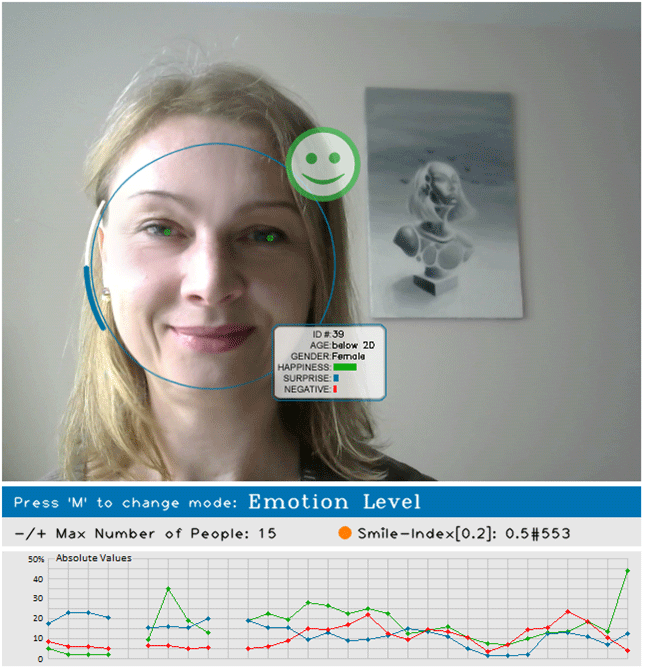 Если web-камера смотрит на клиента, фиксируется эмоциональный фон клиента. Если web-камера смотрит на фронт персонал - фиксируется эмоциональный фон работника передней линии.