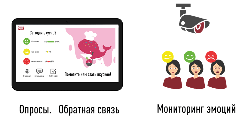 - Измерения и оценки эмоций клиентов во время нахождения в точке (локации) получения услуг.