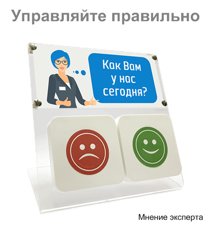 Однако технология оценки качества обслуживания с использованием кнопочных пультов не сводится только к установке кнопок «нравится – не нравится» и сбору соответствующей статистики. Во-первых, большинство клиентов не горят желанием что-то нажимать. Если не предпринять специальных мер к мотивации клиентов, оценивать качество обслуживания будет не более 30% клиентов [1], причём смещение по ряду параметров (пол, образование, доход, особенности характера и т.п.) по сравнению с генеральной совокупностью будет очень велико. Следовательно, получаемая статистика не будет соответствовать реальной удовлетворённости клиентов. Во-вторых, если не будет обеспечена возможность отделить недовольство клиентов, вызванное плохим качеством обслуживания от недовольства, вызванного не зависящими от персонала факторами (что-то сломалось, большая очередь и т.п.), то получаемую статистику нельзя будет увязывать с системой мотивацией, что существенно сузит область применения данной технологии.