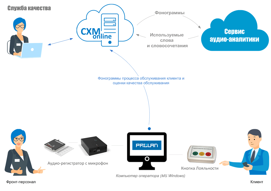 Все переговоры между клиентами и фронт-персоналом (кассирами) автоматически записываются на диктофон или передаются в Аудиорегистратор. Поддерживаемые системы записи переговоров.