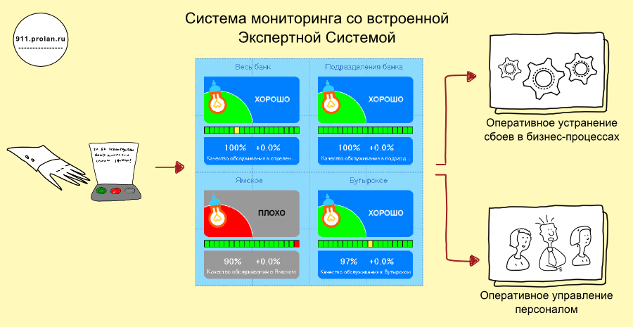 Чтобы постоянно быть в курсе удовлетворенности клиентов, не обязательно постоянно наблюдать за значениями ОКО. В состав Кнопки Лояльности входит удобная система оповещения, которая будет автоматически уведомлять вас всякий раз, когда удовлетворенность клиентов станет ниже определенного ТИПОВОГО значения. (Снижение удовлетворенности клиентов в какой-либо точке обслуживания или регионе ниже типового значения для данной точки следует рассматривать как инцидент).