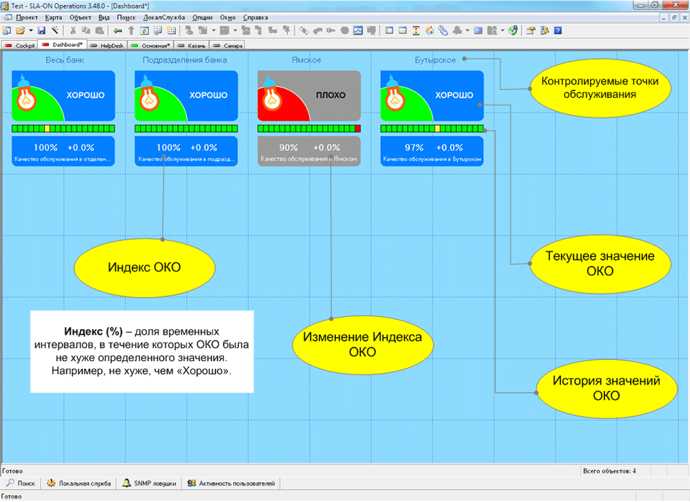 Консоль SLA-ON Operations используется для отображения МКО и ОКО в удобном для анализа виде.