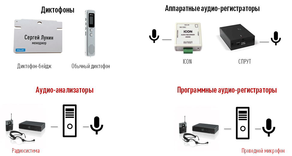 - Аппаратные аудиорегистраторы ICON и СПРУТ.