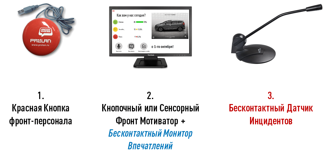 Фронт Мотиватор также должен быть всегда, т.к. это простейший способ организации управления клиентским опытом в точке контакта. Бесконтактный Монитор Впечатлений целесообразно добавлять при выполнении двух условий: