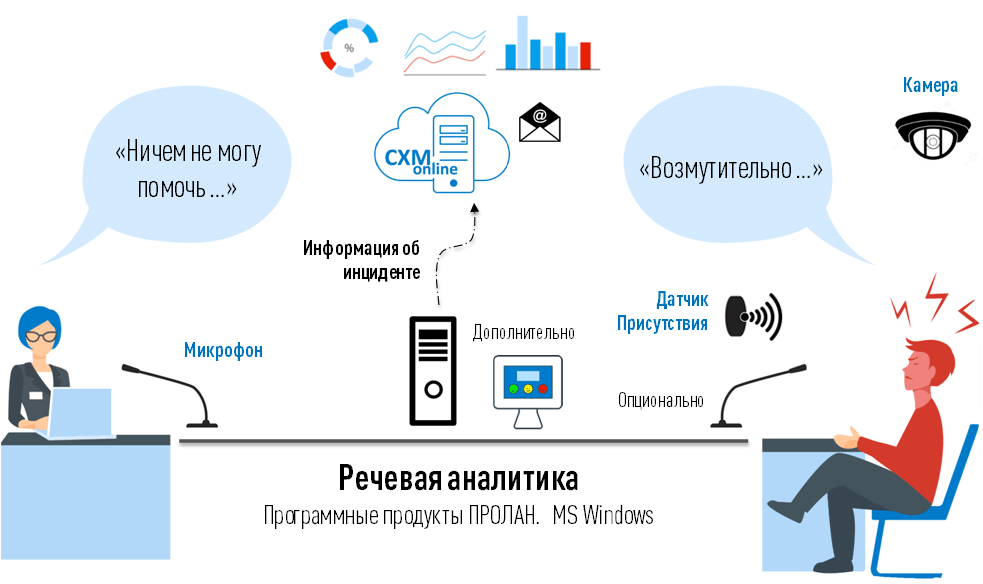 БДИ автоматически фиксирует все события, требующие внимания руководства или службы качества (далее - инциденты). Для этого в режиме реального времени средствами текстовой аналитики анализируется диалог между клиентом и фронт-персоналом.