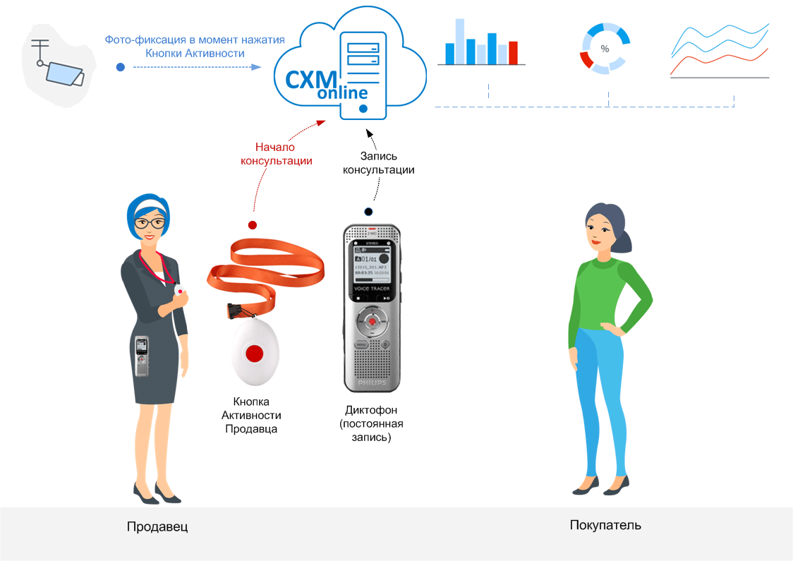 Контроль соблюдения фронт персоналом стандарта обслуживания выполняется не с помощью традиционных Тайных Покупателей, а методом постоянной записи ВСЕХ разговоров между клиентами и фронт-персоналом, выполняемой фронт-персоналом, из которой автоматически "вырезаются" фрагменты нужной длительности.