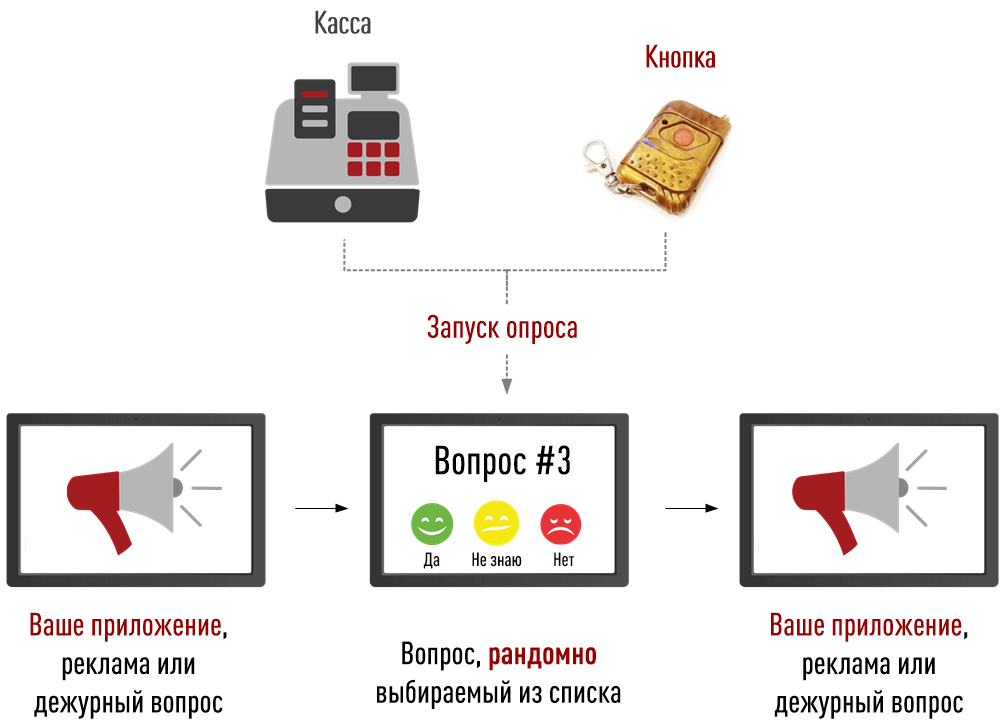 Запуск опроса может выполняться и по другим событиям, например, по нажатию продавцом специальной кнопки или через определенное время после срабатывания датчика присутствия.