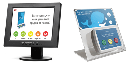 - Ключевое преимущество Кнопки Анкетёр не в том, что это экономичное решение, т.к. в нем используются обычные мониторы и кнопки, а не сенсорные терминалы (планшеты), и его можно брать в аренду.