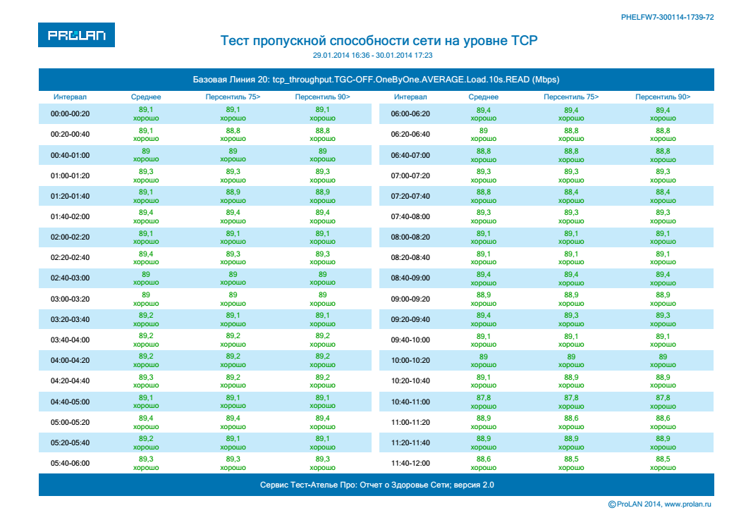 Управление генерацией трафика позволяет, с одной стороны, автоматизировать измерение пропускной способности сети, с другой стороны, проводить замеры только в те периоды, когда пользователи не работают. Это обеспечивает высокую репрезентативность и достоверность получаемых результатов. Такая технология тестирования является know how компании ProLAN.