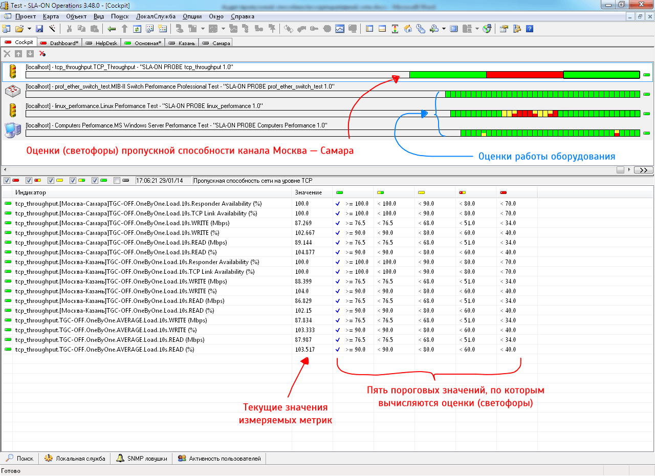 Жалобы пользователей, фиксируемые Кнопкой Помощи ITSM, и производительность сети, измеряемая в рамках Нагрузочного Мониторинга Сети, всегда привязаны к единой временной шкале. Поэтому, чтобы реабилитировать сеть, достаточно убедиться, что в момент жалобы пользователя (нажатия им «красной кнопки») пропускная способность сети была нормальной.