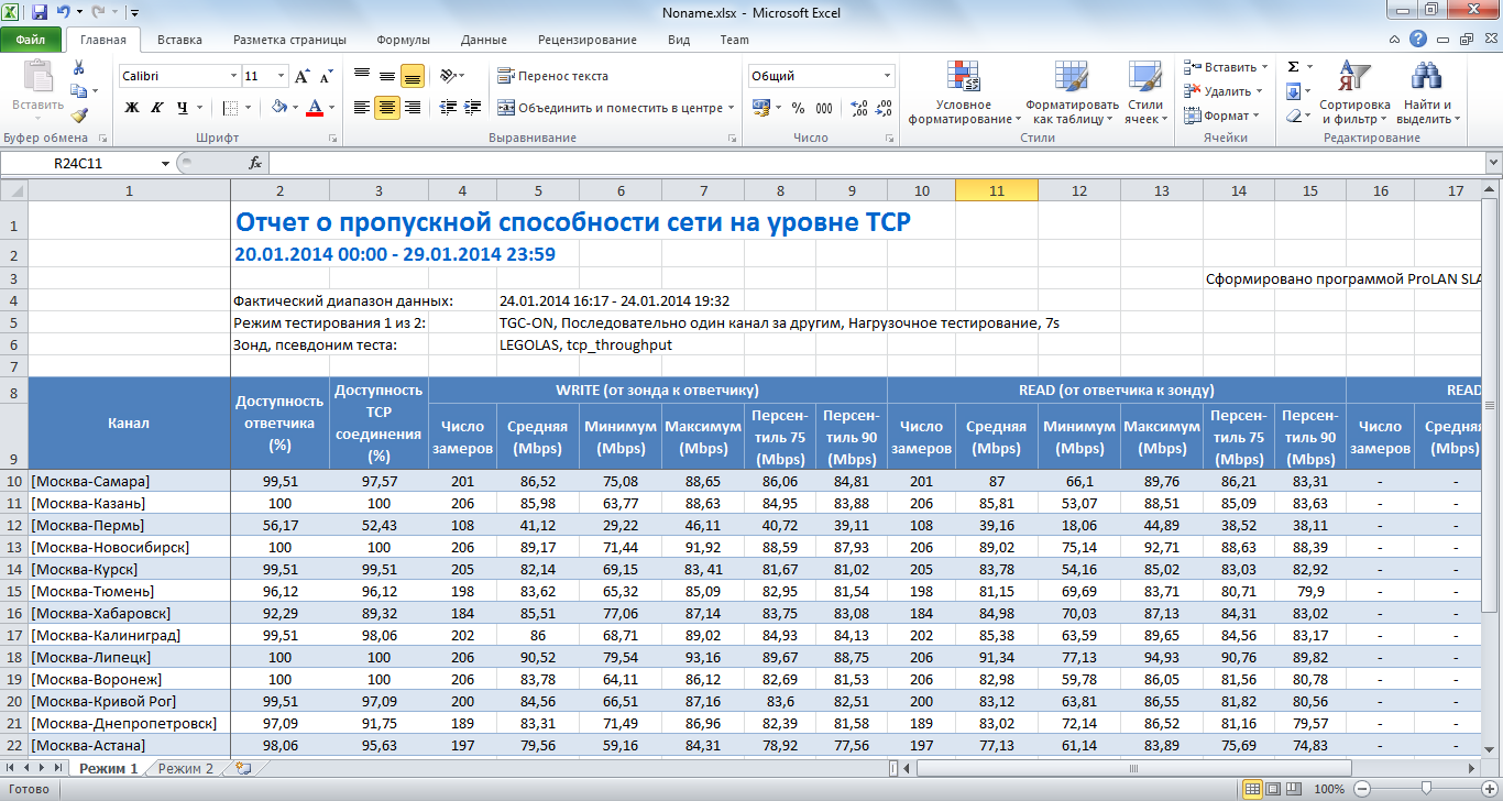 Одно из применений Нагрузочного Мониторинга Сети – аудит получаемых услуг, например, от интернет-провайдера. Пропускная способность сети, измеренная в то время, когда пользователи не работали, однозначно характеризует качество работы опорной сети провайдера. Зная номинальную пропускную способность каналов на физическом уровне и сравнив её с измеренной пропускной способностью на уровне TCP, вы легко опередите, какие каналы работают хорошо, а какие – плохо.