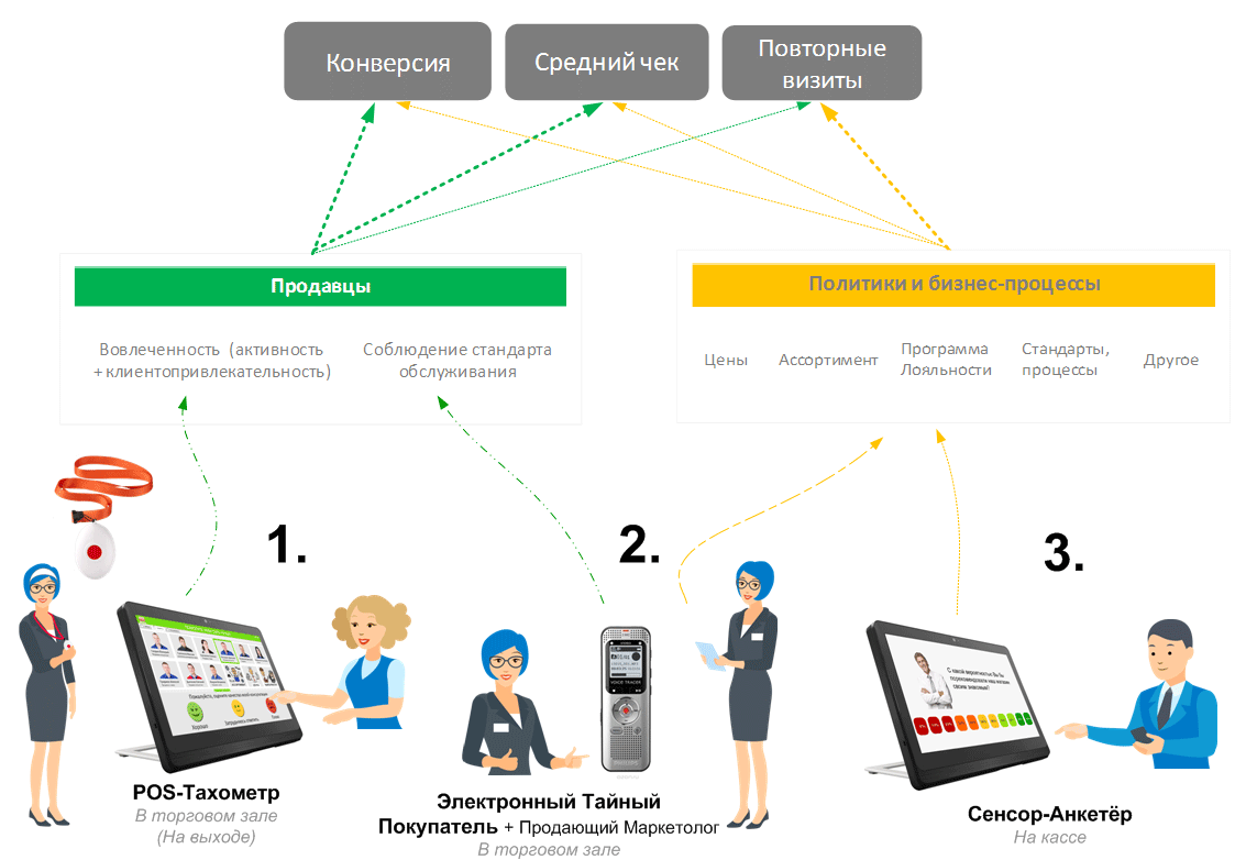 От продавцов зависит многое, но не все. Не менее важно, чтобы товар и политики (цены, ассортимент, программа лояльности и т.п.) соответствовали ожиданиям покупателей. Управлять можно только тем, что можно оцифровать. Для оцифровки ожиданий покупателей используется решение Сенсор Анкетер.
