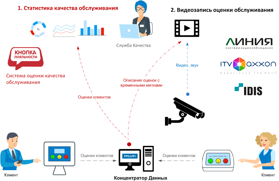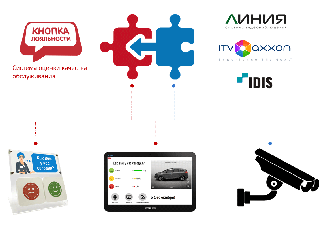 Интеграция Кнопки Лояльности с системой видеонаблюдения повышает эффективность управления качеством обслуживания.