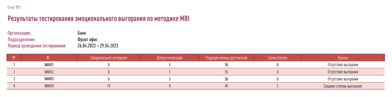 Тестирование на основе полного опросника Maslach Burnout Inventory (MBI) целесообразно проводить не реже 1 раза в 3-6 месяцев.
