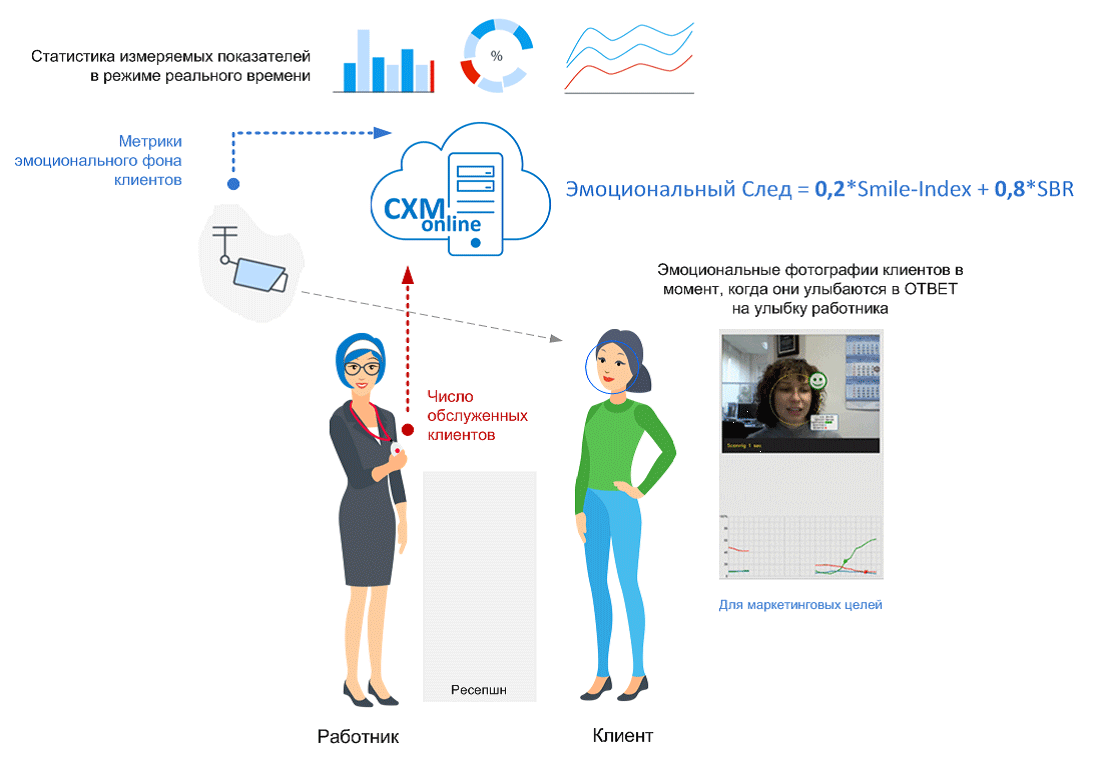Новый подход – использовать для измерения эмоционального следа систему видео-аналитики, позволяющую автоматически измерять эмоции клиентов.