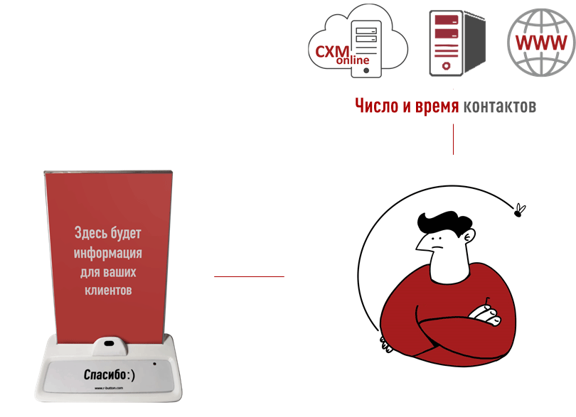 - Счетчик контактов и/или посетителей, автоматически измеряющий число обслуженных клиентов и фиксирующий время каждого контакта;
