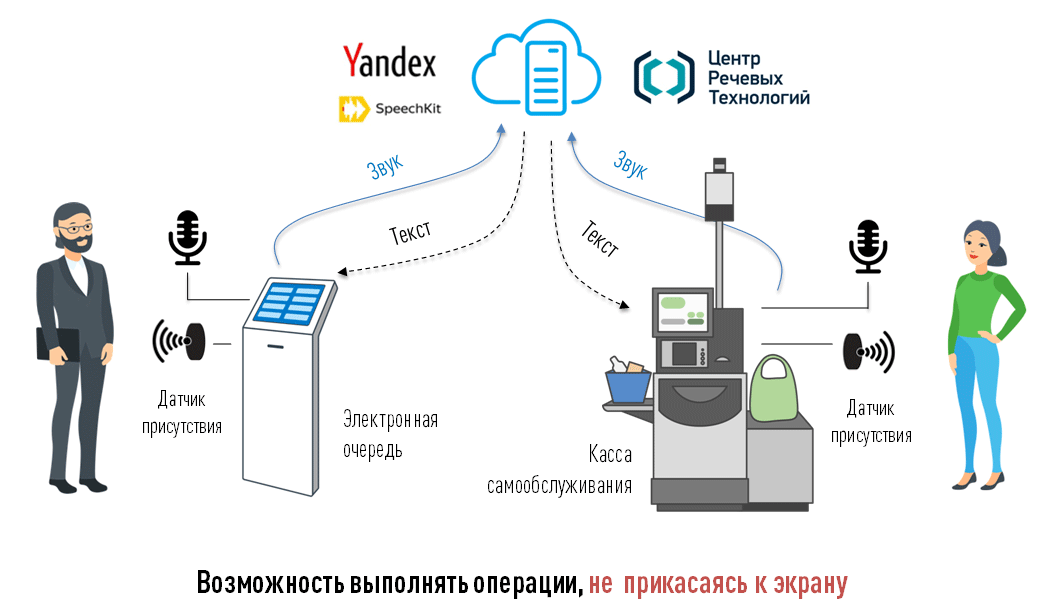 VoiceTouch - технология голосового управления сенсорными терминалами. Дополняет терминалы возможностью нажимать кнопки и листать экраны голосом, исключая необходимость прикасаться к экрану.