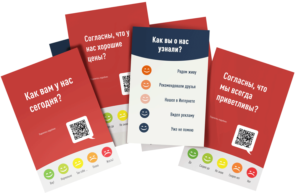 Для получения Эмоциональной обратной связи используются пульты с разными смайликами. В этом случае фронт персонал не должен просить клиентов принять участвовать в опросе. Отвечать должны только те клиенты, кто захотел сам. Это критически важно. Такой процесс получения информации называется Стихийным опросом. При Стихийном опросе измеряется доля клиентов (от числа обслуженных), отвечающих на вопрос определенным образом. Например, Индекс Поддержки Клиентов и Индекс Критичности Клиентов.