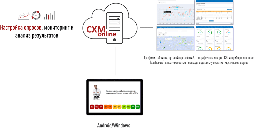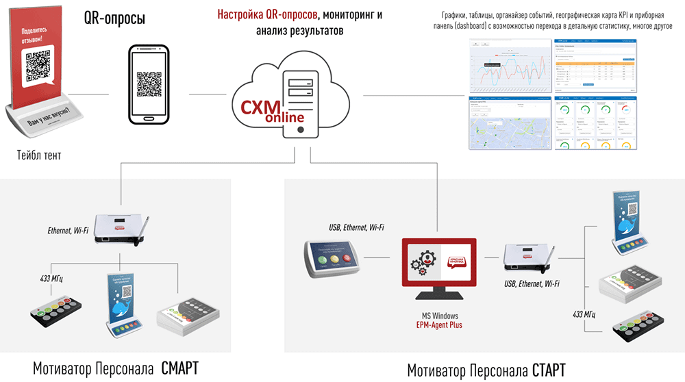 Терминал Профессиональной обратной связи может работать как автономно, так и с корпоративным сервером и/или с web-сервисом.