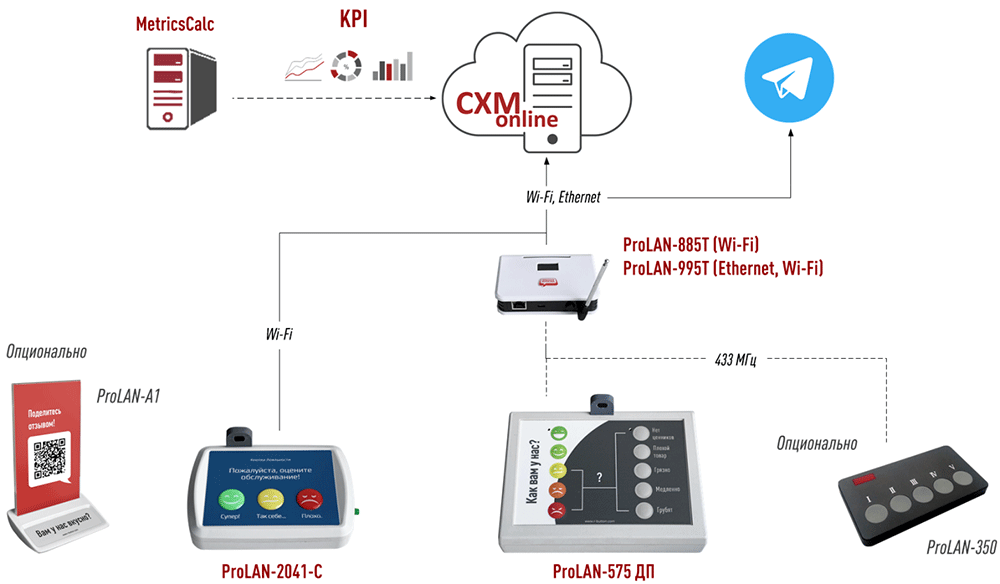 | 2. | Автономный приемник. В зависимости от ИТ-инфраструктуры в точке обслуживания можно использовать: ProLAN-885Т (Wi-Fi с передачей данных в Telegram), ProLAN-995Т (Wi-Fi, Ethernet с передачей данных в Telegram). |